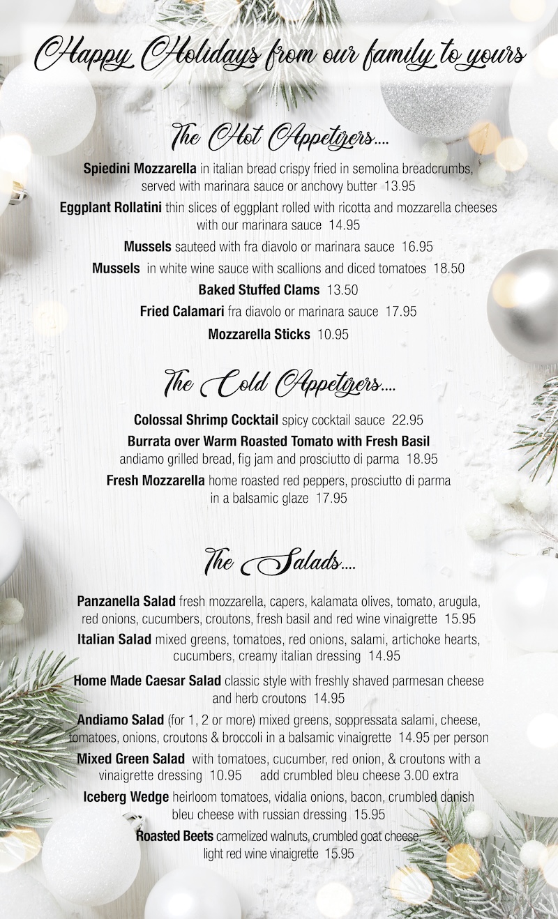 Christmas Eve, Christmas Day, New Year's Eve Menu No Delivery Available, Take Out only on Christmas Day