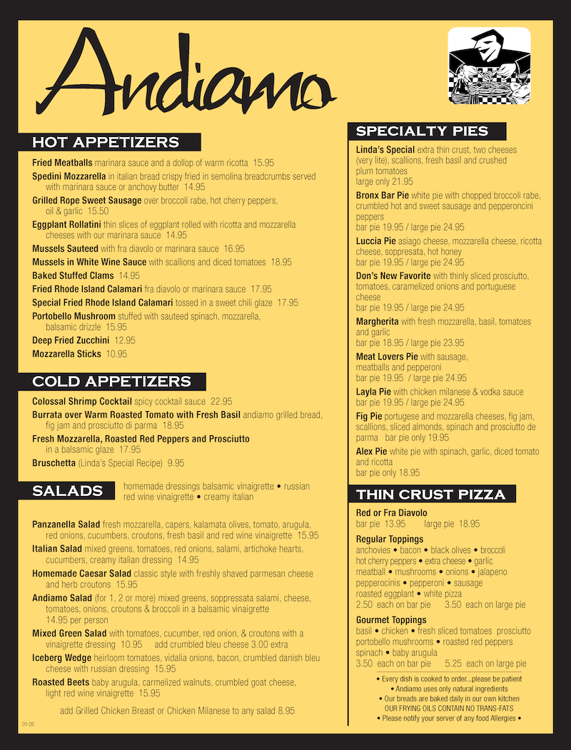 Andiamo uses only natural ingredients * our breads are baked daily in our own kitchen