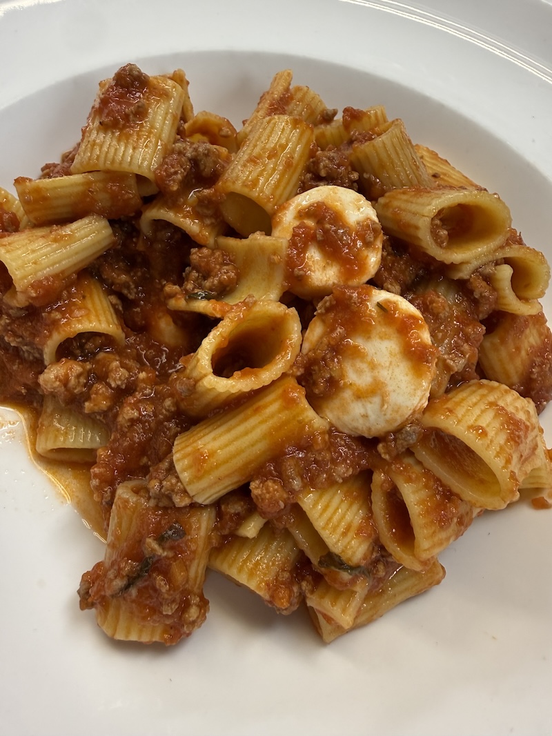 | Chicken Renata over penne with spinach and tomatoes in a white wine sauce | Rigatoni meat sauce with fresh mozzarella |